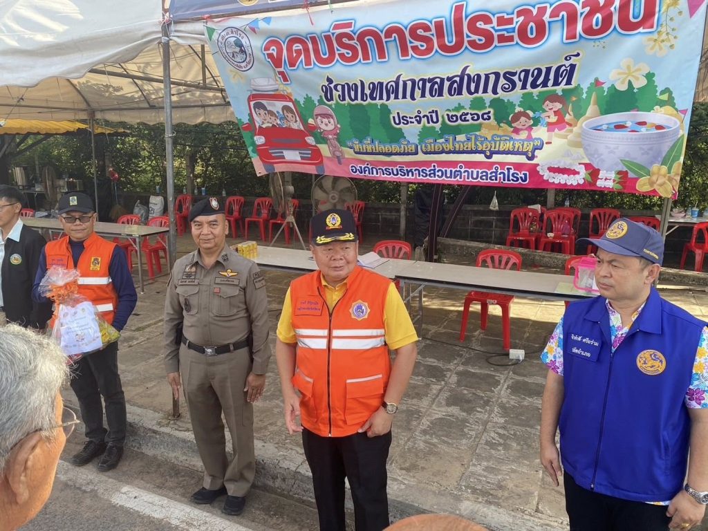 นายธาตรี สิริรุ่งวนิช รองผู้ว่าราชการจังหวัดศรีสะเกษ พร้อมคณะ เดินทางมาตรวจจุดบริการประชาชนช่วงเทศกาลสงกรานต์ 2568 ภายในพื้นที่อำเภออุทุมพรพิสัย จุดสี่แยกส้มป่อย ทล.226 ต.สำโรง อ.อุทุมพรพิสัย จ.ศรีสะเกษ