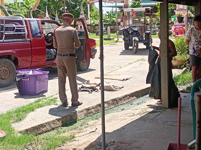 วันที่ 16 พ.ย. 2567 เวลา 09.00 น. ร.ต.อ.กฤษฎ์ กันแก้ว รอง สว.(สอบสวน)สภ.อุทุมพรพิสัย ออกตรวจที่เกิดเหตุ วางยาสุนัข-แมว เพื่อหาพยานหลักฐานสืบสวน หาตัวผู้กระทำความผิดเพื่อดำเนินคดีตามกฎหมาย