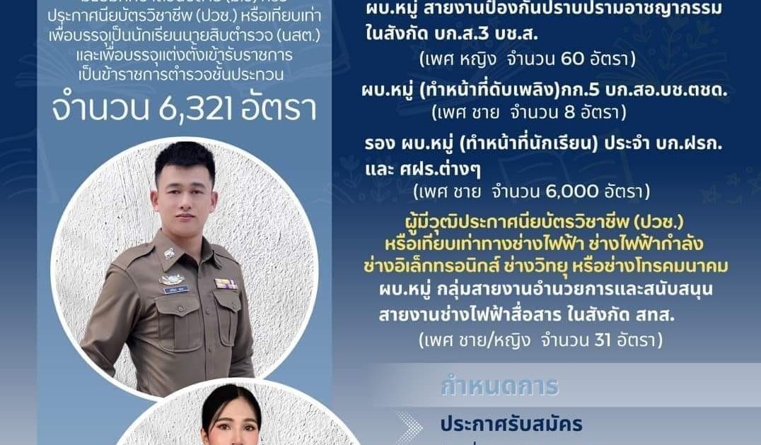 เปิดรับสมัคร นักเรียนนายสิบตำรวจ (ชาย/หญิง) ทั่วประเทศ (วุฒิ ม.ปลาย หรือเทียบเท่า) รวมกว่า 6,321 อัตรา