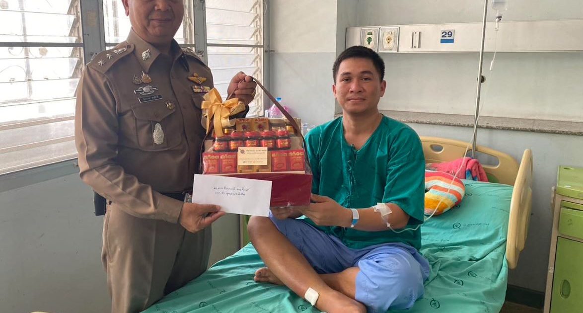 พ.ต.อ.นิลกาฬ พรศักดิ์ ผกก.สภ. อุทุมพรพิสัย เข้าเยี่ยม ให้กำลังใจ และมอบกระเช้า แก่ จ.ส.ต.สุรศักดิ์ โคตพันธ์ ผบ.หมู่(ป.)ฯ รักษาอาการที่ รพ.อุทุมพรพิสัย ต.กำแพง อ.อุทุมพรพิสัย